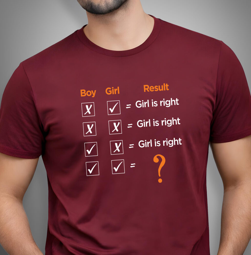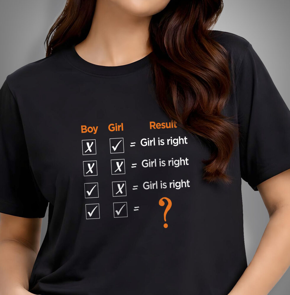 This tee breaks down every possible argument scenario and arrives at the only outcome that truly matters: Girl is right. Always.