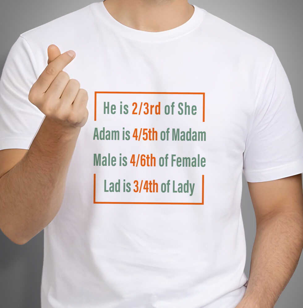 Because He is 2/3rd of She, Adam needs Madam, Male upgrades to Female, and Lad only becomes a Lady’s Lad. Math, but make it romantic.